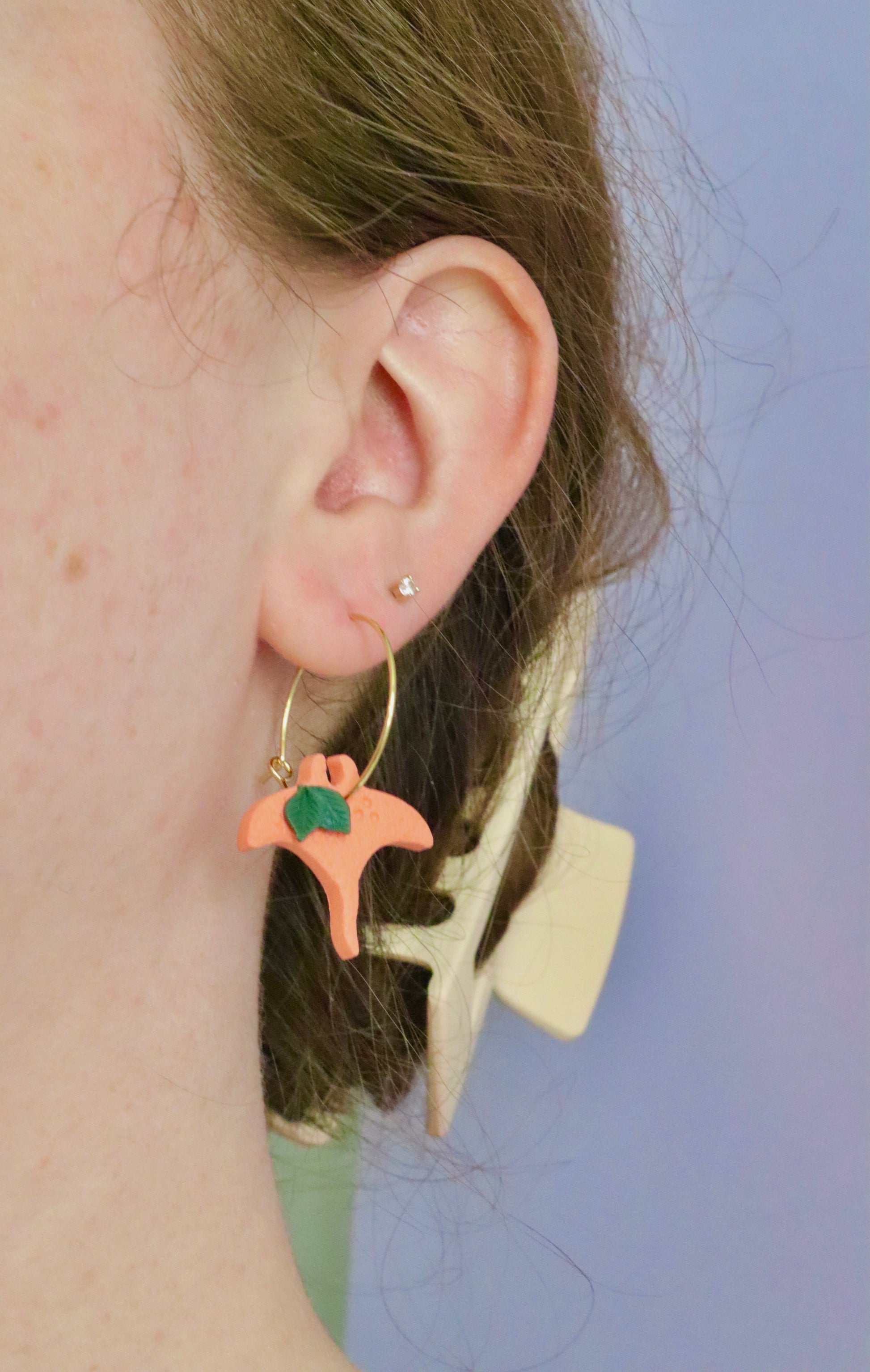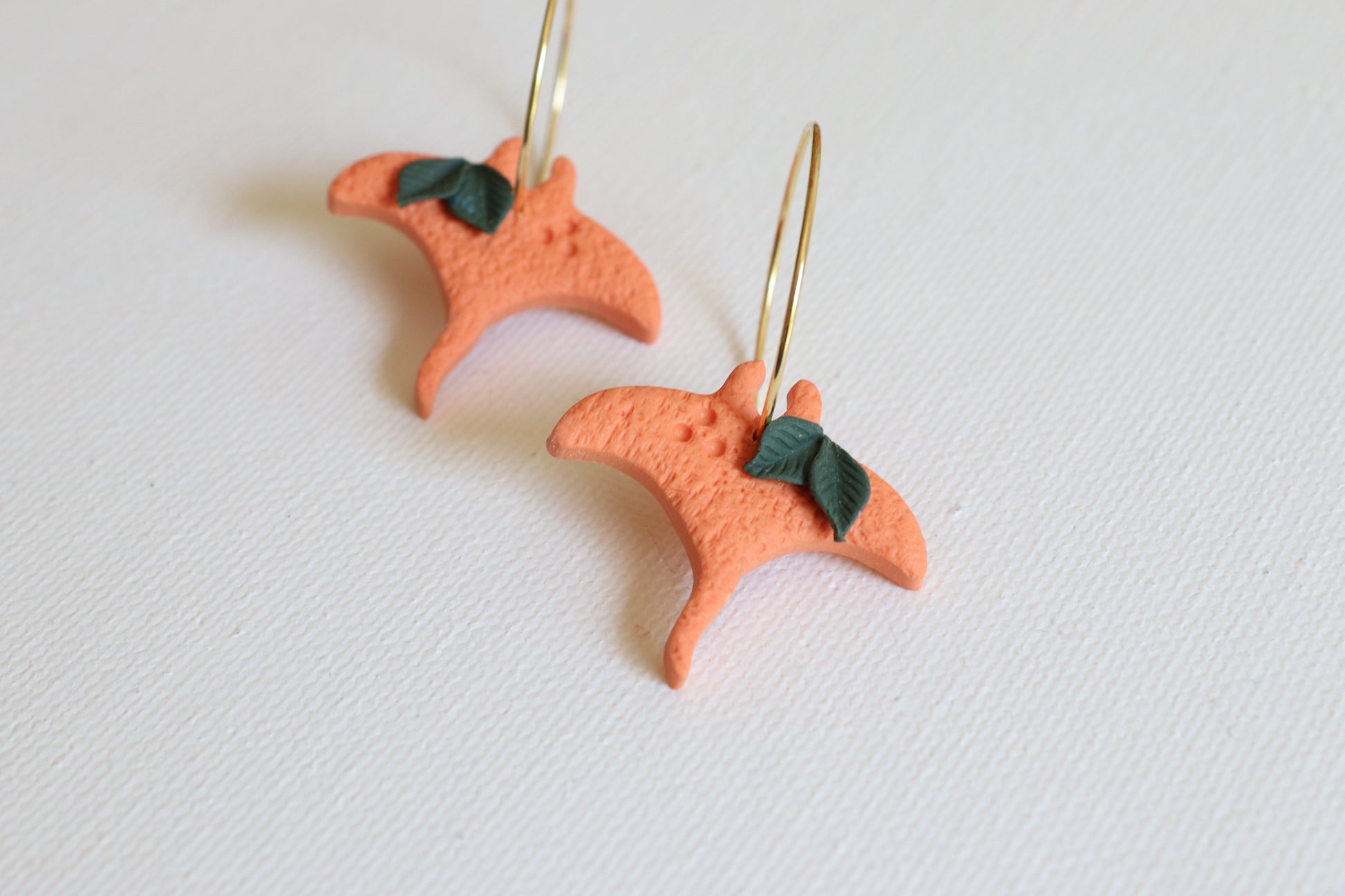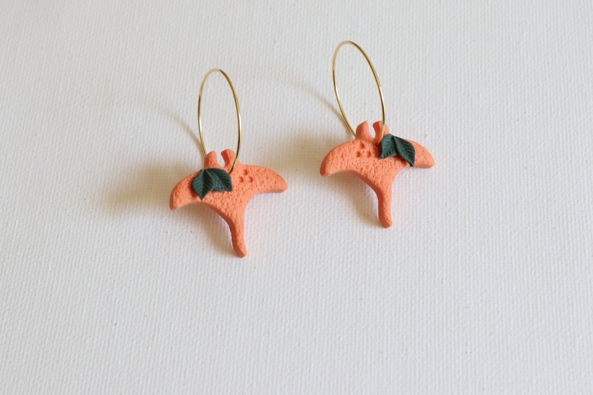 These Manta-rin Oranges (or Manda Rays, as they are called by some), hang gracefully from gold-plated, 25mm hoops (nickel-free and hypoallergenic).