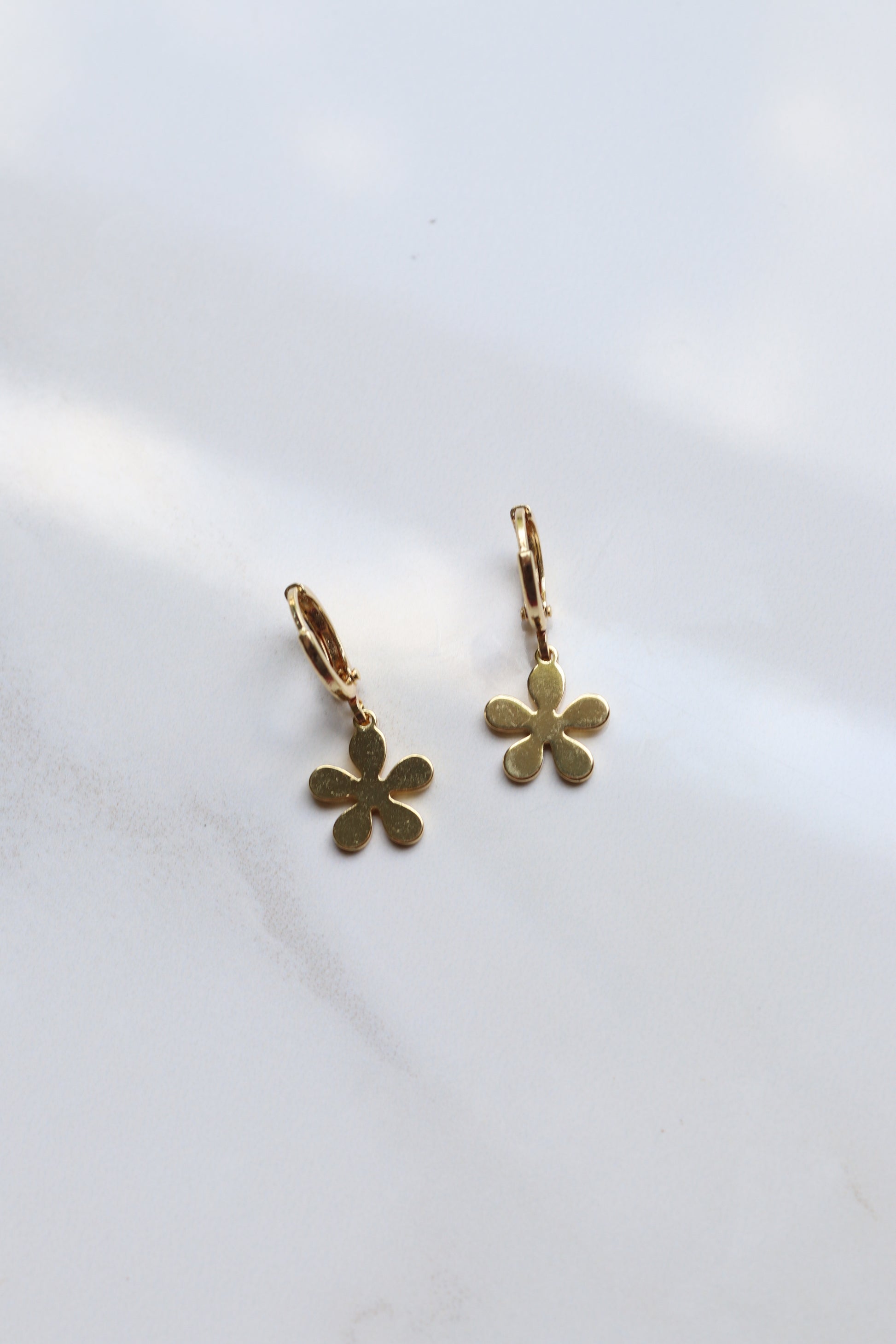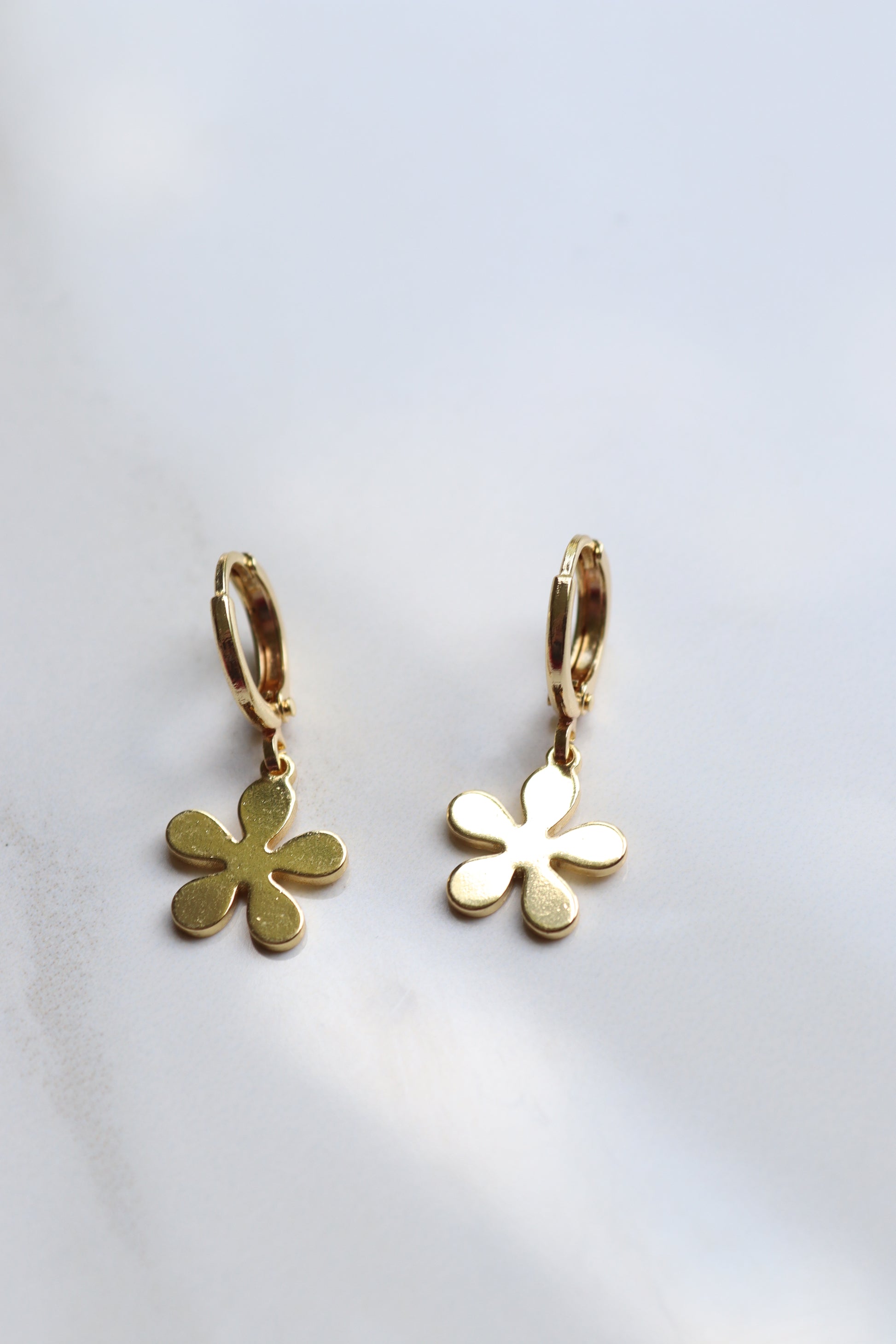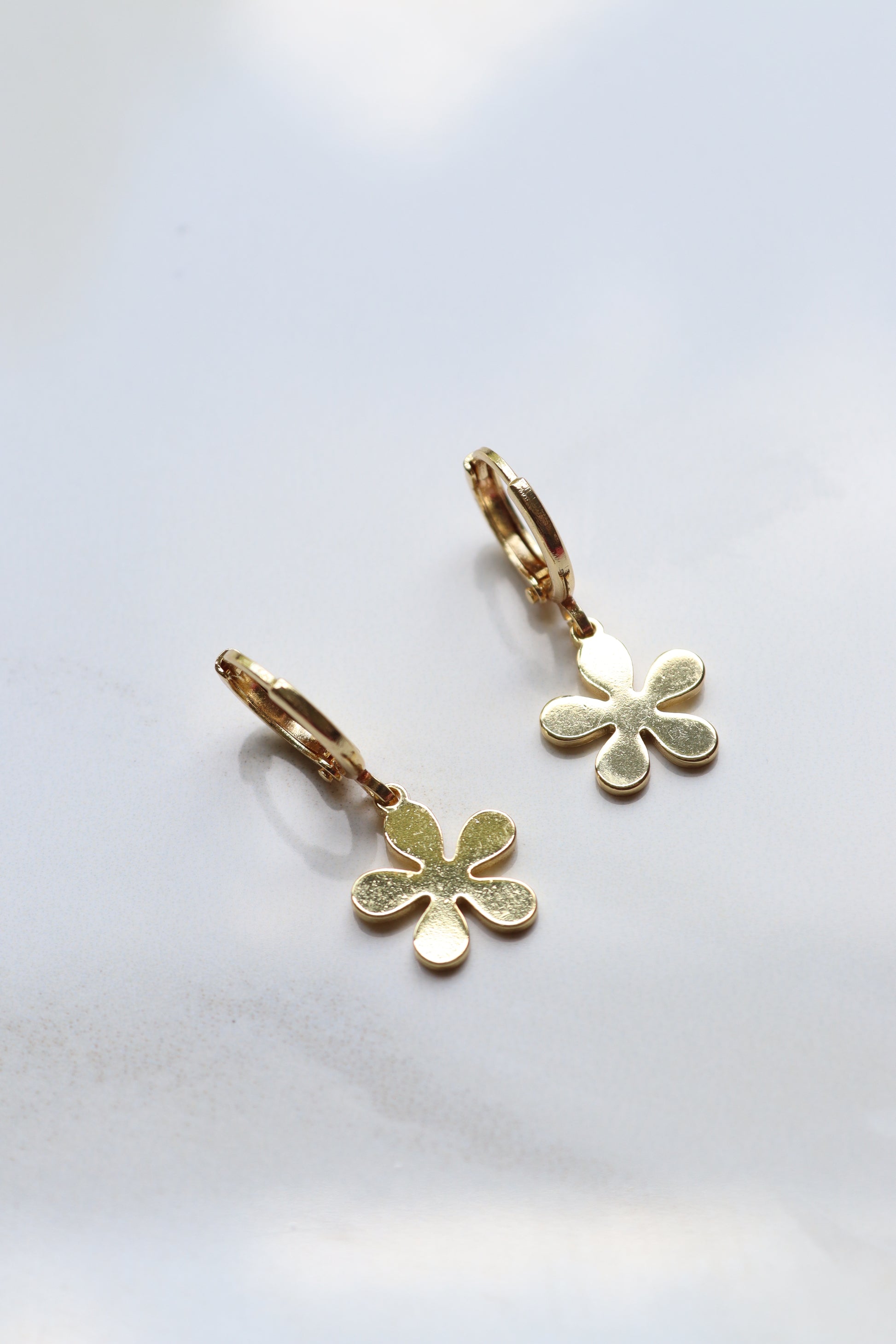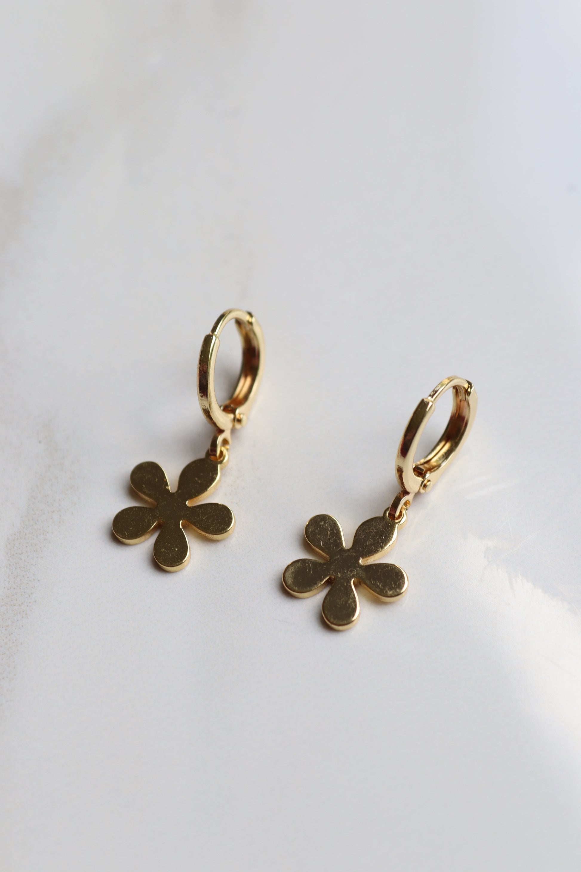 Dainty gold-filled flower charms on gold-filled huggies.
