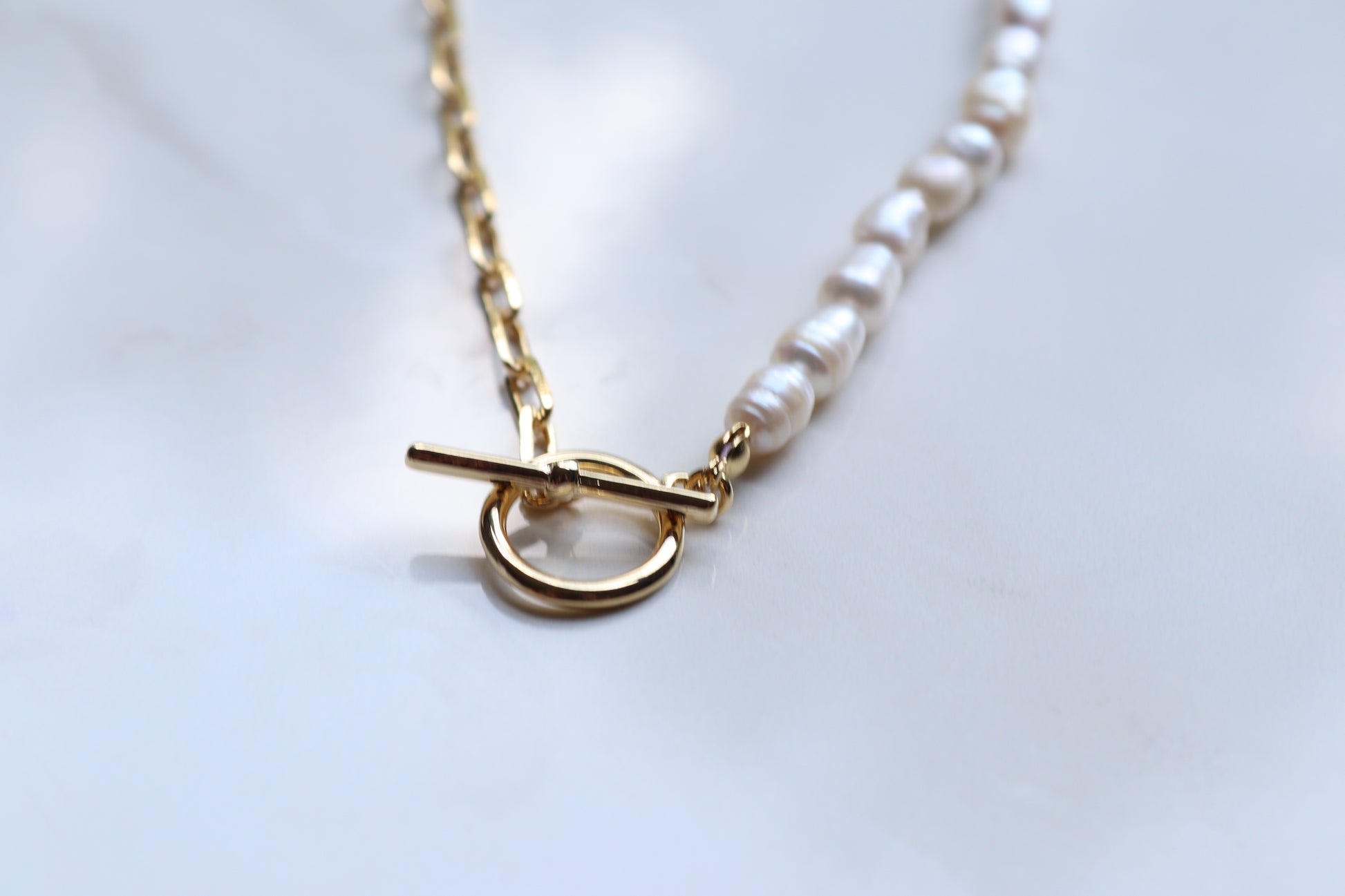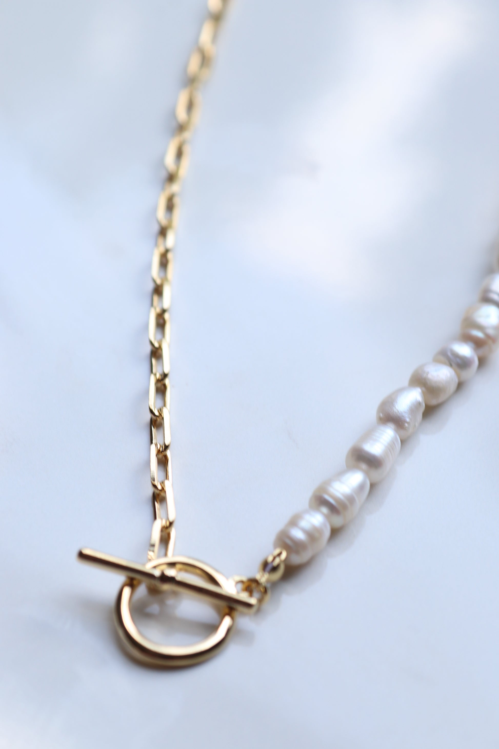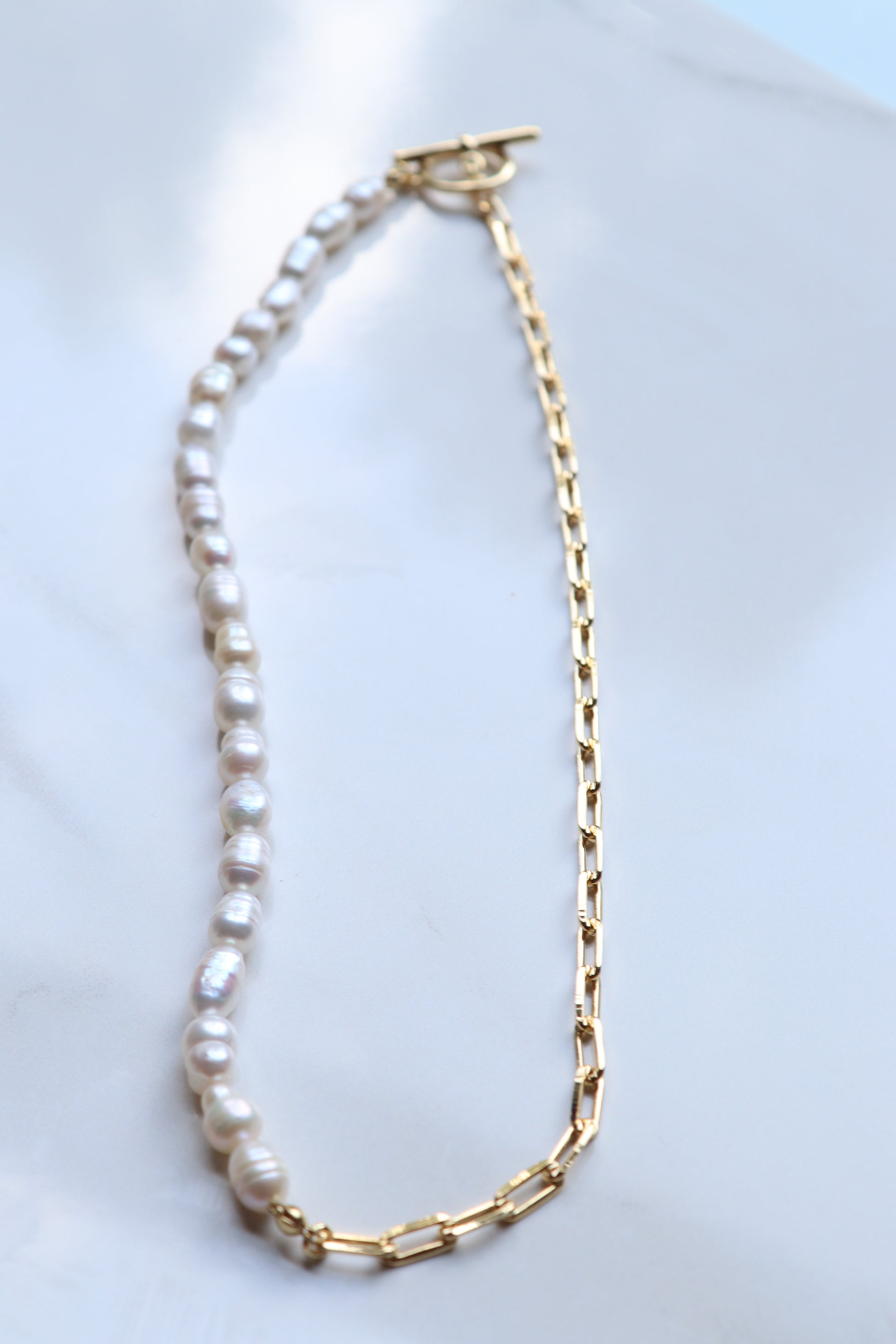 Gold-filled paperclip chain, meet freshwater pearl chain.