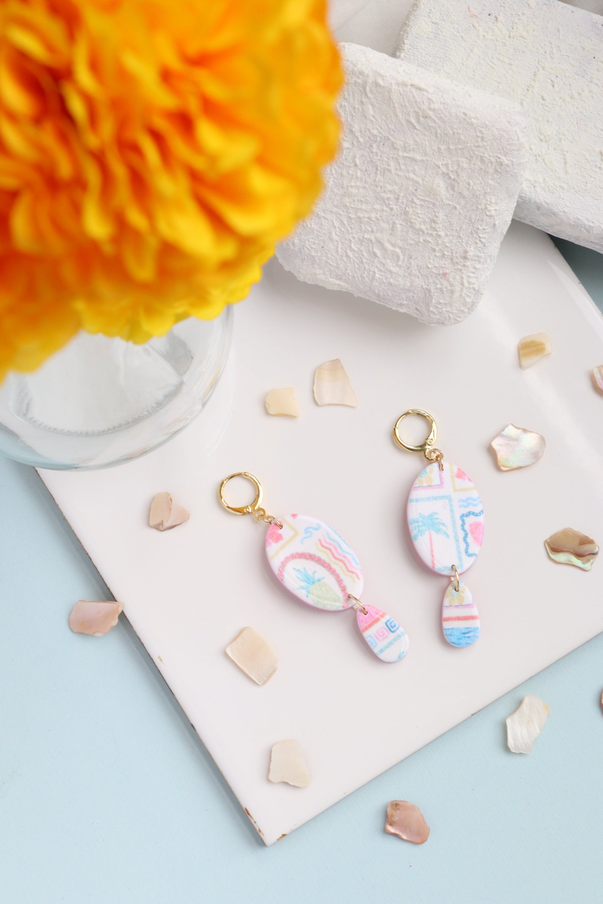 - Do not bend your earrings! While polymer clay is generally flexible, we do not recommend bending your earrings as they may become damaged.